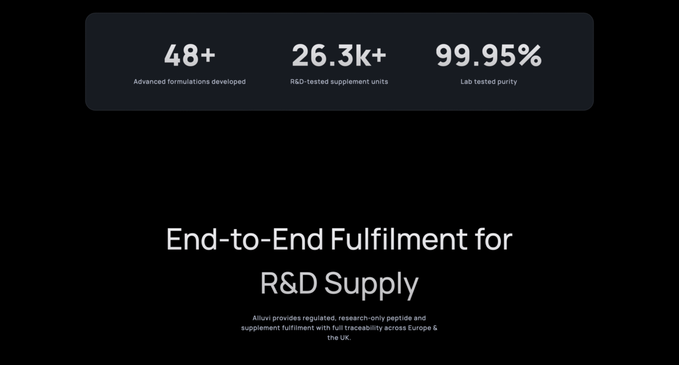 Eliminate uncertainty with unverified vendors. Alluvi ensures compliant, batch-tested peptides and compounds for non-human research, supported by fast UK & EU dispatch and documented supply chain integrity.