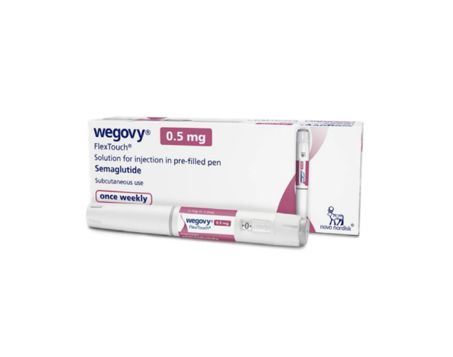 Wegovy® (semaglutide) 0.5 mg weekly injection is a prescription drug approved by the FDA to help adults who are overweight or obese and have health problems linked to their weight. It comes in 4 pre-filled pens that can be used for 28 days. When combined with diet and exercise, it helps control blood sugar, lower hunger, and make you feel full.